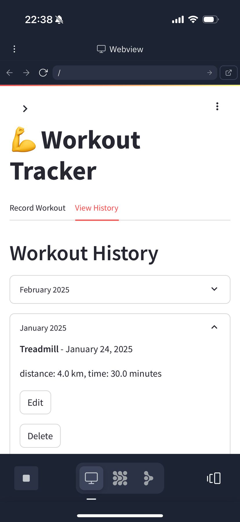 ワークアウト履歴も、入力内容に基づいて、月ごとにまとめて表示してくれるようになっている。言葉で指示しただけで、自分が思い描いたアプリが、数分で完成して動作してしまうことには驚かされる。