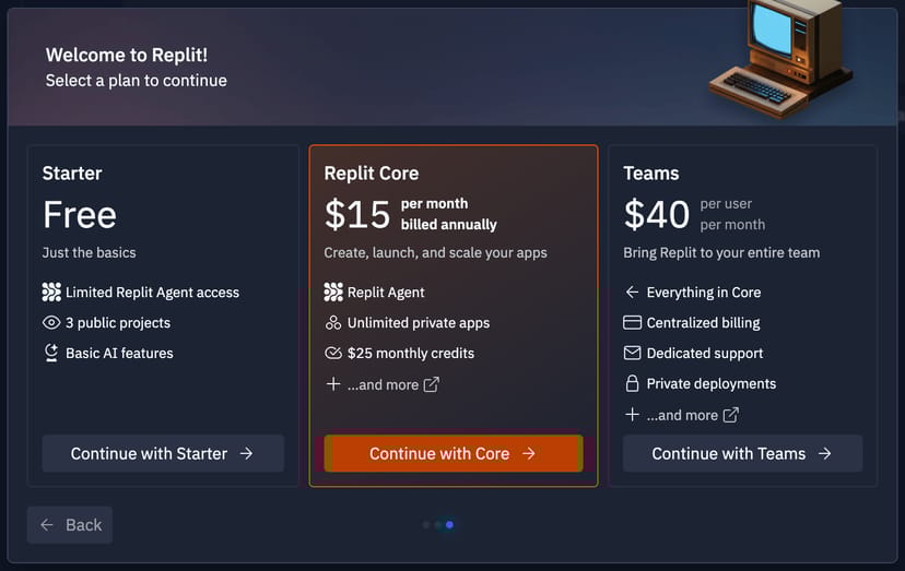 ReplitのStarterプラン(無料プラン)では、作成して保存しておけるアプリの数は3つに制限されている。