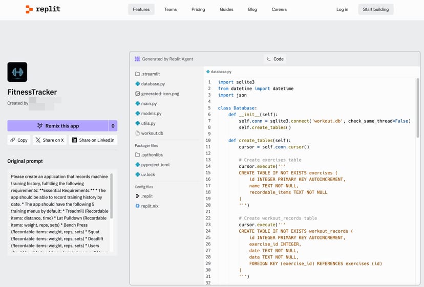 例えば、健康のためジムに通っており、成長を記録するため、筋肉トレーニングやランニングの履歴をメモっておきたいが、自分のトレーニング内容に合致するアプリがない、なんて時は、まさにReplitの活躍する場面だ。