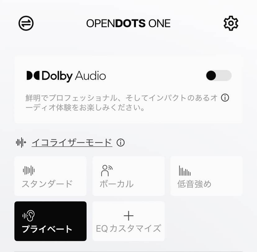 また、どうしても音漏れを防ぎたい場合には、イコライザでさらに音漏れしにくいように音域を調整する「プライベート」モードを、アプリで選択することも可能になっている。