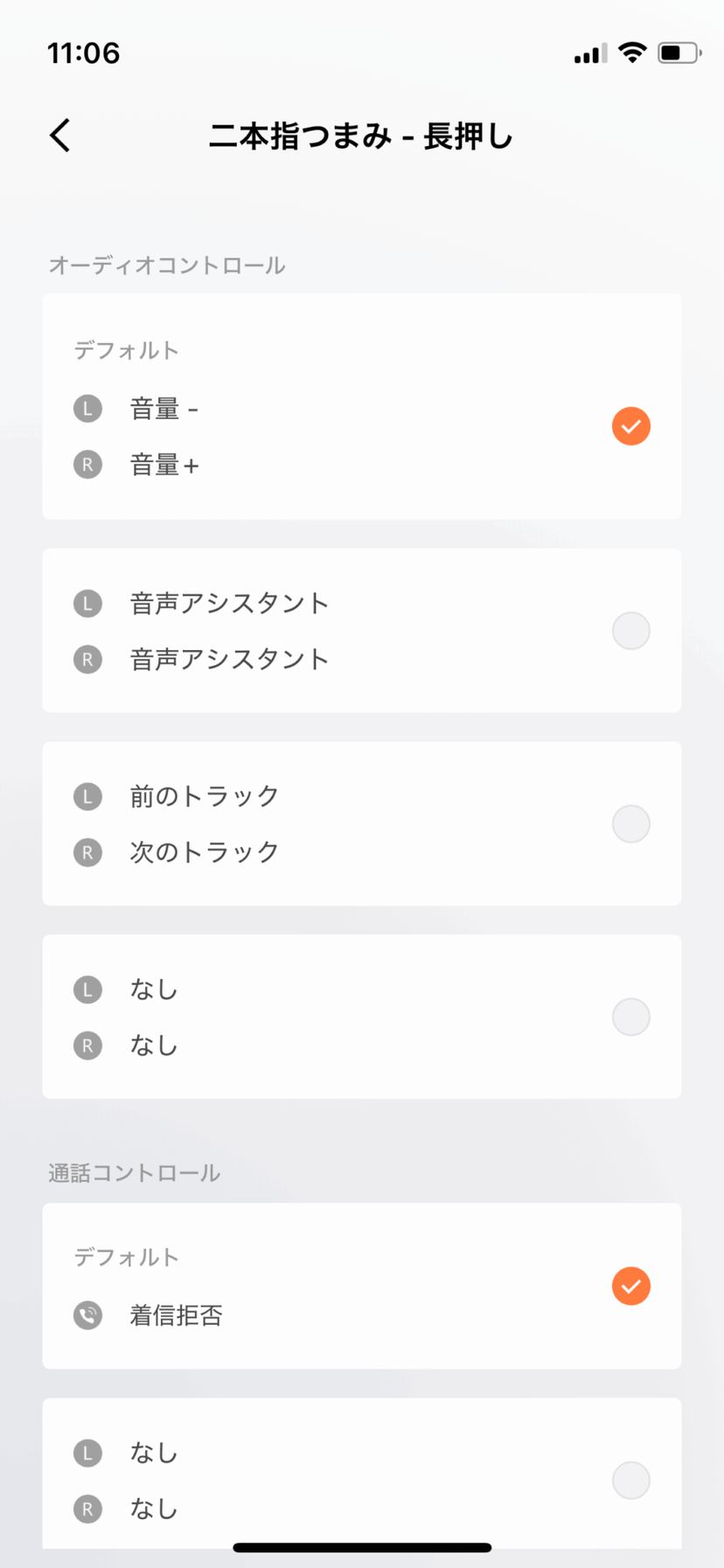 特に、「長押し」に割り当てるアクションは、音量増減、トラック送り、音声アシスタント起動など、複数の中から選択することができるようになっている。