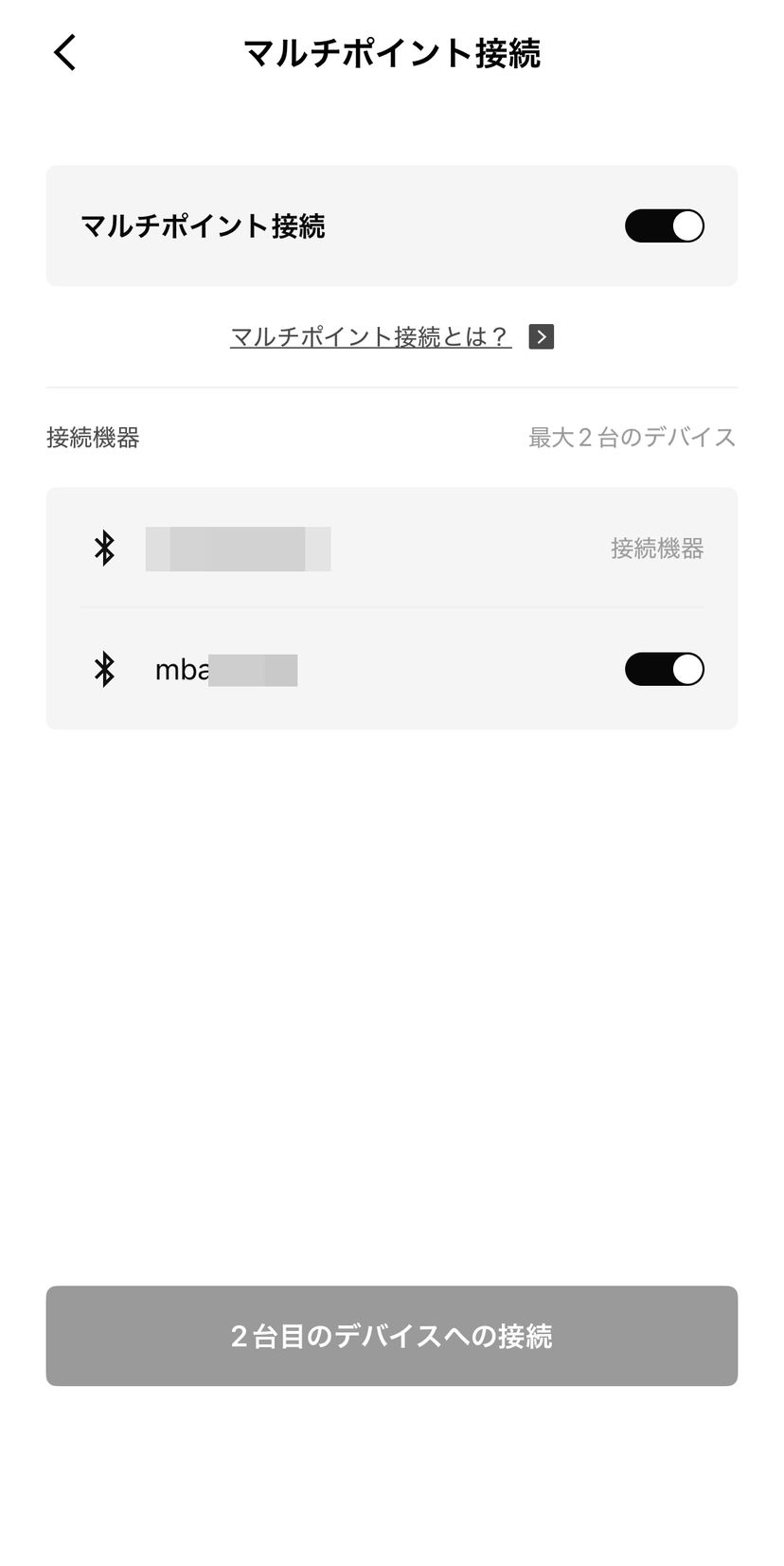 アプリから、2台目のデバイスの追加や、ペアリングしたデバイスのオンオフの切り替えが可能である。