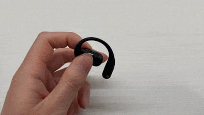 このOpenFit 2のイヤーフックだが、驚くほどぷるぷる柔らかく、全体的に指で押したらぷにっと凹む感じだ。
