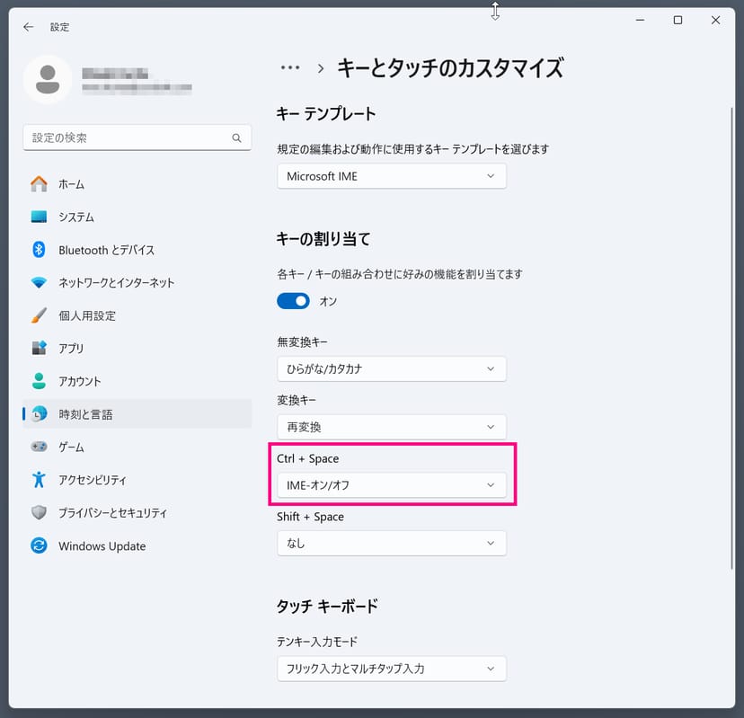 US配列キーボードの場合:IME切り替えのショートカットを有効にする
