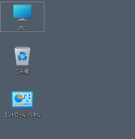 筆者は、デスクトップを常にクリーンにしておきたいため、「ごみ箱」以外のアイコンを表示しないようにしてある。