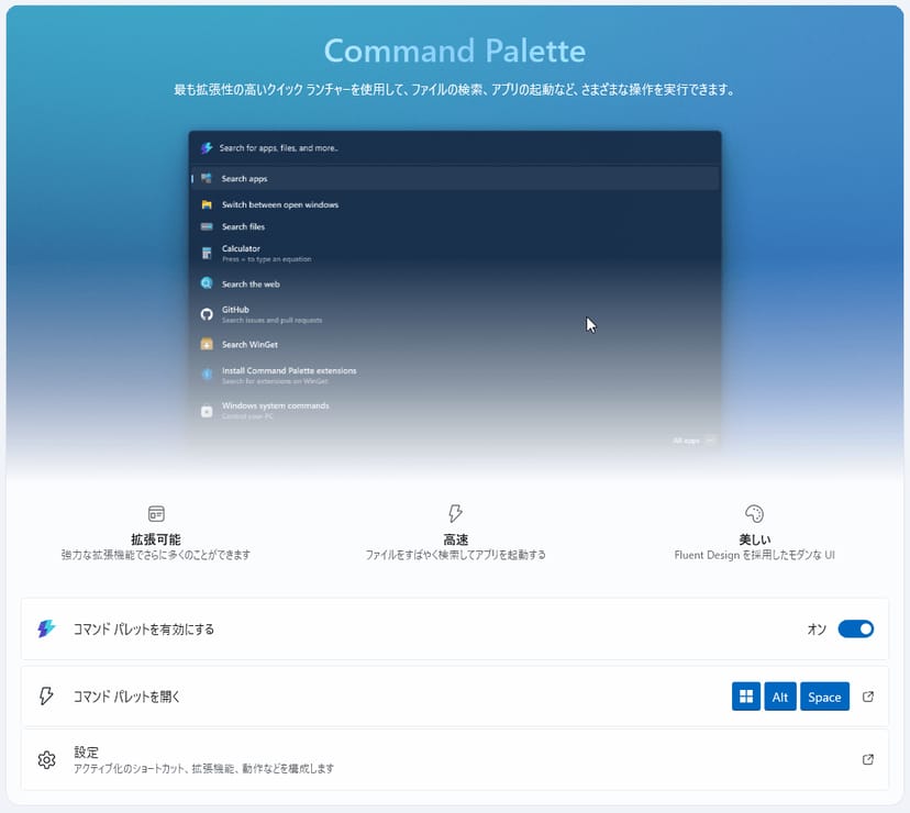 ちなみに、「コマンドパレット」というPowerToys Runの後継となる機能が開発されており、すでにPowerToysの中に含まれている。