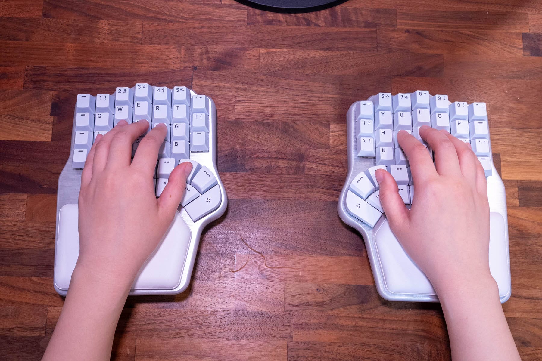 左右スプリットキーボードの最大のメリットは、より自然な姿勢でタイピングできるようになる点にある。