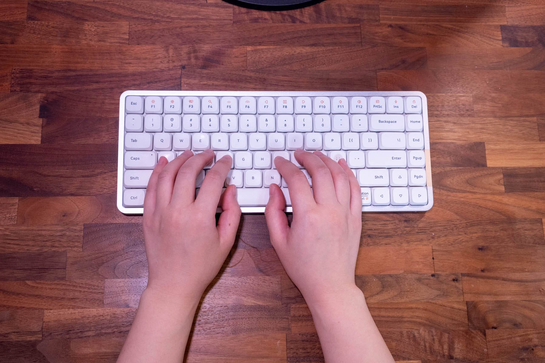 「左右分割型」キーボードの最大の利点は、肩幅に合わせてキーボードを配置できることで、猫背や前屈みの姿勢を防ぎ、長時間のデスクワークによる負担を軽減してくれる。