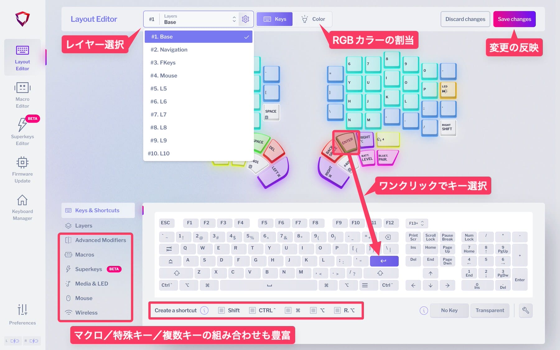 - 高品質なソフトウェア:キーマップの変更が史上最強に簡単