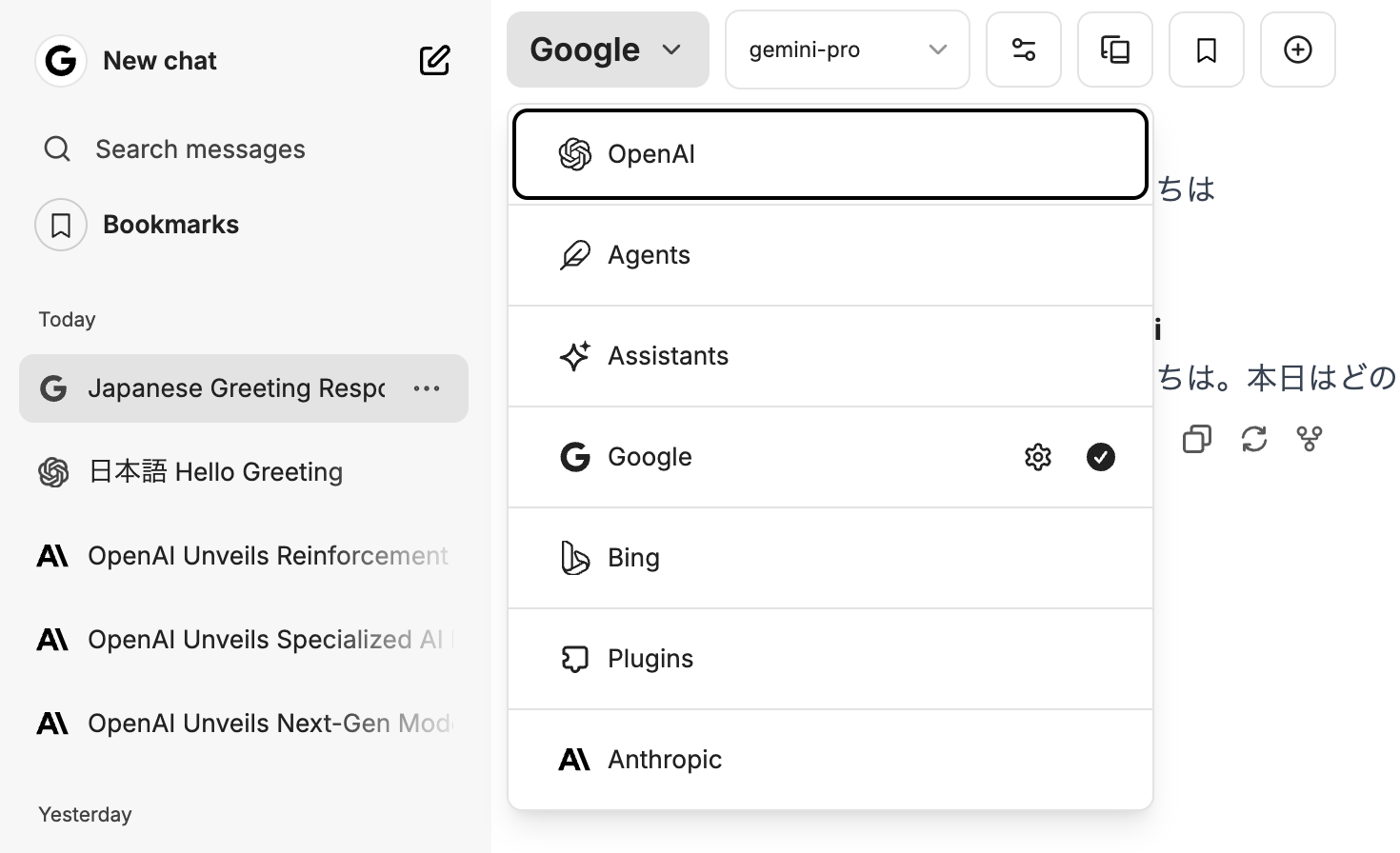 これで、OpenAIとAnthropicのすべてのAIモデルを、LibreChatの一つの画面から呼び出せるようになった。