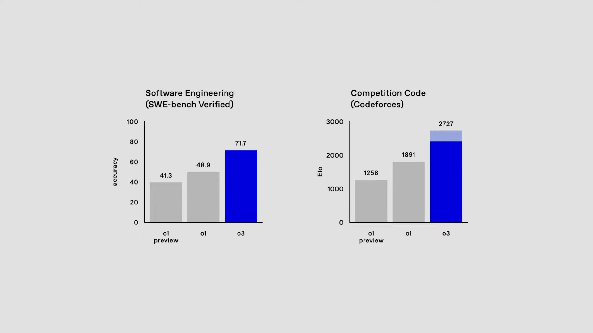 これは、前モデルのo1と比べて20%以上の改善になる。既にo1モデルも、プログラミング時に非常に役立つと評判であるところ、o3が登場すると、ソフトウェア開発の現場でAIに頼めることがもっと増えそうだ。