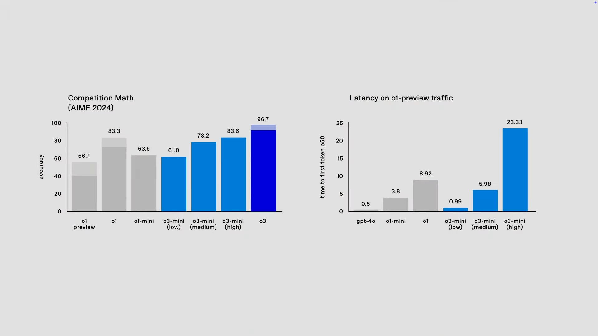 ここで比較されているのはo1モデルだが、o1モデルはプロットの右上に位置しており、このトレードオフを克服し、両方を同時に改善できたことを意味している。