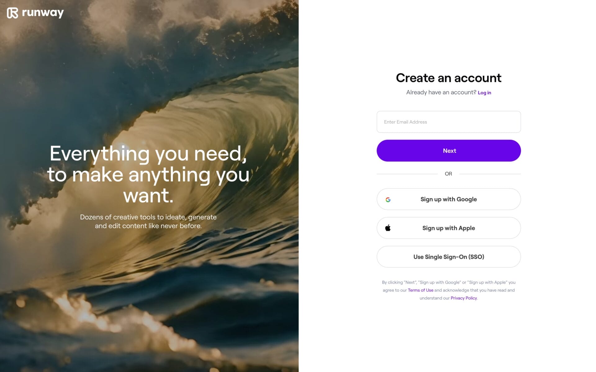 まずはRunwayの公式ページにアクセスして、アカウントを作成する。